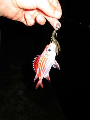 Мне уже ясна система: рыба хорошо ловится в темноте, выходит поохотиться на камни, клюют рыбки преимущественно красного цвета, техас немного лучше отводного и дропшота проходит камни.