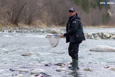 Первый период. Стартую и вижу, что, к моему удивлению, свободен 12-й сектор. Долго не раздумываю, занимаю его и жду команды: «Старт!». Звучит гудок. Старт. Из приманок решил ничего не менять: Trait №00 и Тoto – два моих союзника в сегодняшней баталии. Рыба явно активней, чем вчера. Первые три заброса закончились сходом рыбы. Неужели будет повторение вчерашнего сценария? Продолжаю ловить, не меняя приманки. Далее ловлю двух рыб к ряду. Настроение немного улучшилось. Больше рыба не проявляет интереса к вертушке. Меняю её на Тoto 48SP. Решение о смене оказалось правильным, и я ловлю третью рыбу. Следующие 20 минут я пытался подобрать «ключик» к несговорчивой рыбе, перебирая приманки в коробке. Решением в данной ситуации оказался GagaGoon 45S. Он отлично держит струю сильного горного потока. Это принесло мне ещё двух рыб. В итоге с пятью рыбами я финиширую. Это четвёртое место в старте.