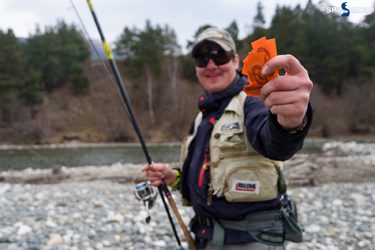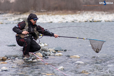 Занимаю 13-й сектор, в котором до меня ловил Илья Пиварчук. Звучит гудок судьи. Старт дан. В ход пускаю вертушку Trait №00. Рыба атакует приманку, но получается досадный сход. Повторяю заброс… и уверенная поклёвка. Неспешно вываживаю, и счёт открыт. Дальше рыба устроила забастовку. Перебрал содержимое коробки. Мой выбор пал на силиконовые приманки L.Baits. Путём смены силиконового червя и нимфы выловил с большим трудом трёх рыб. Сложность заключалась в сильном боковом ветре, дующем вдоль ущелья. Из-за этого приманки на лёгкой головке быстро выносило из сектора. В итоге с четырьмя рыбами я финиширую. Это третье место в старте.
