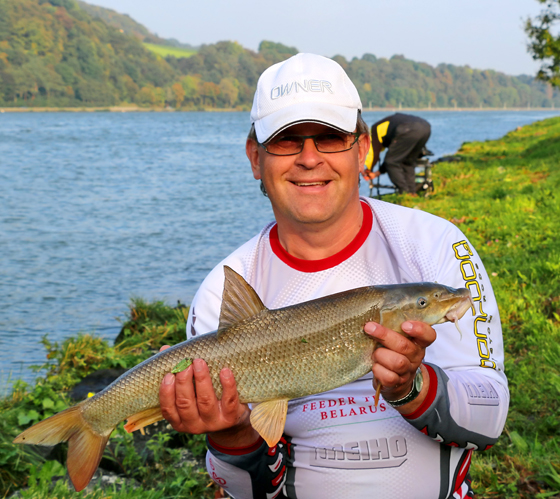 Маленький по ее меркам крючок чудом держался с внешней стороны рта и отвалился практически сразу в сетке. По ощущениям, я устал не меньше усача. Бурлящий адреналин некоторое время не позволял четко координировать мне свои дальнейшие действия. Я попытался закрепить свой успех, но поклевок до конца тура больше не было. Первое место в моей зоне занял спортсмен с усачом почти на 3,8 кг. Вторым стал мой приятель Моби (Werner Moby Hofmann) с лещом и несколькими бычками на 3,25 кг. Мой красавец потянул на 3,12 кг и принес мне третье место в зоне.