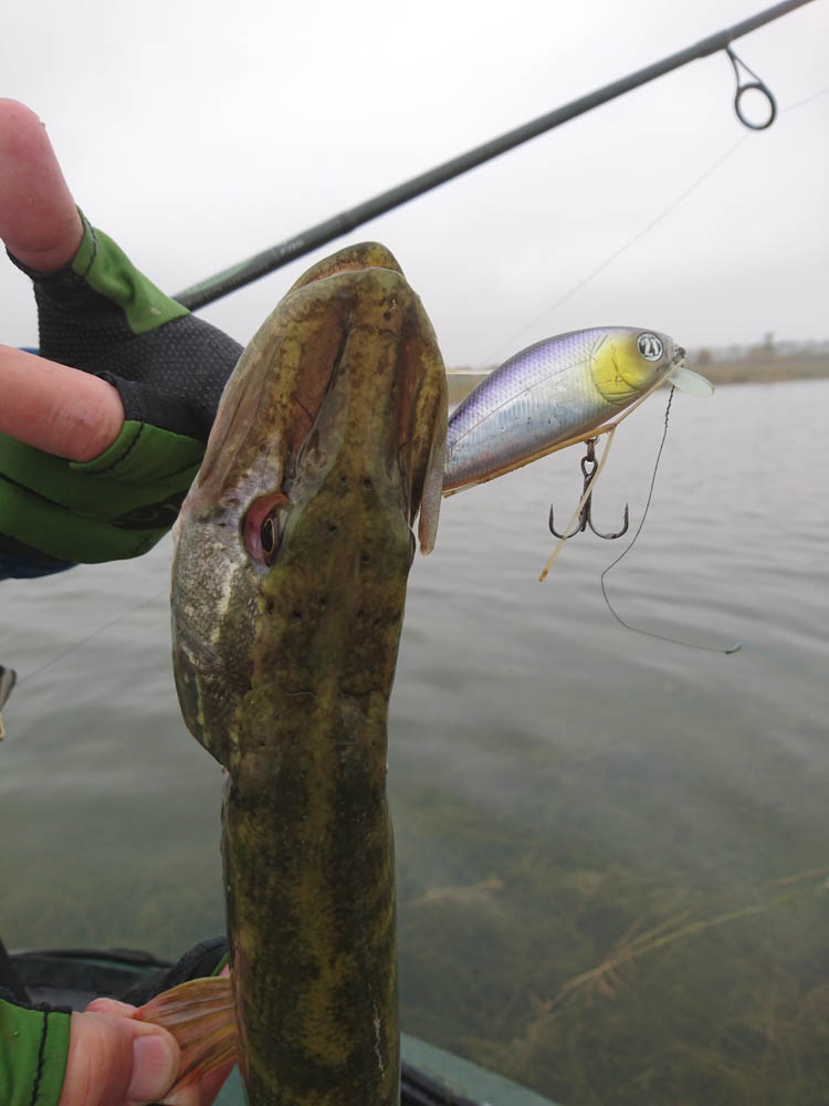 Второй день нас встретил густым туманом. Видимость не более 200 метров. Включаю приборы навигации, и стрелой мчим к заветным местам. На воде полный штиль и туман. С вечера мы отметили несколько хороших участков, и решаем начать ловлю именно с них. Но вместе с погодой поменялось и поведение щуки. Вчерашние приманки она полностью отказывалась брать. Если вчера ей нравилось деликатное бульканье Komomo II, то сегодня она шарахалась от него, как и от других поверхностных приманок. Ясно. Эта ситуация мне знакома. Ставлю проверенный Bet-A-Shad 83F в плавающей версии. Другую приманку здесь провести очень сложно из-за высокой растительности. И дело пошло… Ловлю подряд пять штук и одну спускаю.