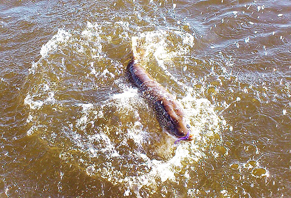 На тренировках к Чемпионату России, нам не удалось «зацепиться» за травяную щуку. Была сделана ставка на джиг. Наиболее ходовой вес – 14 г. Соответственно, мною был выбран спиннинг Pontoon21 Detonada DTS702MLXF с тестом до 14 г. Четырнадцатиграммовая чебурашка уверенно «отбивала» в руку даже в ветреную погоду. В случае необходимости можно было вполне комфортно ловить и более легкими весами (8–10 г).