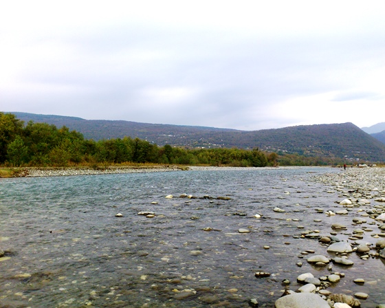 Третье соревнование подряд я провалить никак не мог, поэтому старался держать себя в руках и не поддаваться навязчивому гостеприимству. В этот раз соревнования проходили на речке Гумиста около города Сухум. На мой взгляд, новая речка не слишком сильно отличалась от Бзыби, но все говорили, что эта река меньше. Может по расходу воды она и меньше, но в остальном всё было очень похоже. Искусственных дамбочек в этот раз решили не делать. По-моему не совсем хорошая идея. Так будет много неинтересных секторов, в которых рыбе не за что зацепиться. Рыба была всё та же – радужка весом около 200-300 г.