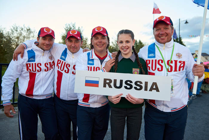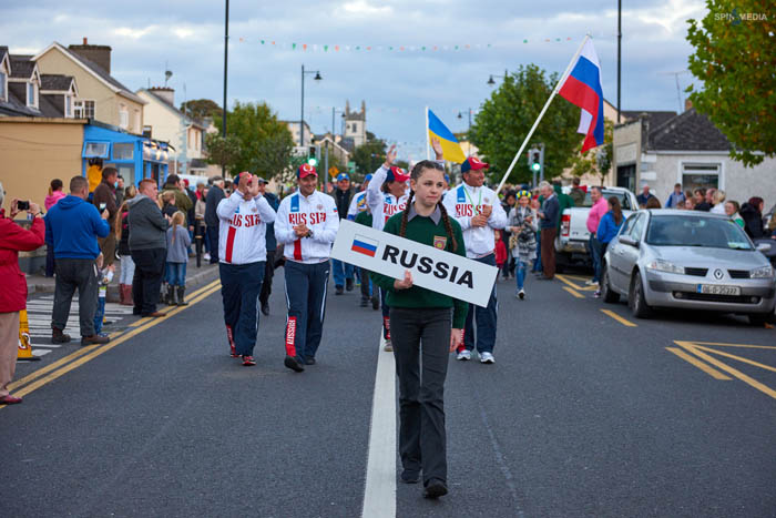 Финишируем, уже по отработанной схеме поднимаем лодку на сушу, едем в гостиницу, переодеваемся и готовимся к построению. Собравшись, всей командой направляемся к месту сбора, на площадь. Подходя, замечаем, что людей уже собралось довольно много, в основном дети и школьники, все в праздничных костюмах, с рыболовной атрибутикой. На моей памяти такой массы приветствующих ещё не было. Все команды в сборе, и парад, посвященный открытию, начинается. Для беспрепятственного проведения мероприятия главную трассу в городе перекрыли, и вот уже все команды в порядке очереди выстраиваются в колонну. Очень захватывающее и красивое мероприятие. Кроме детей в колонне ещё шёл отряд спасателей, полицейский музыкальный ансамбль, огромные надувные сказочные персонажи и супергерои, ретромобили.