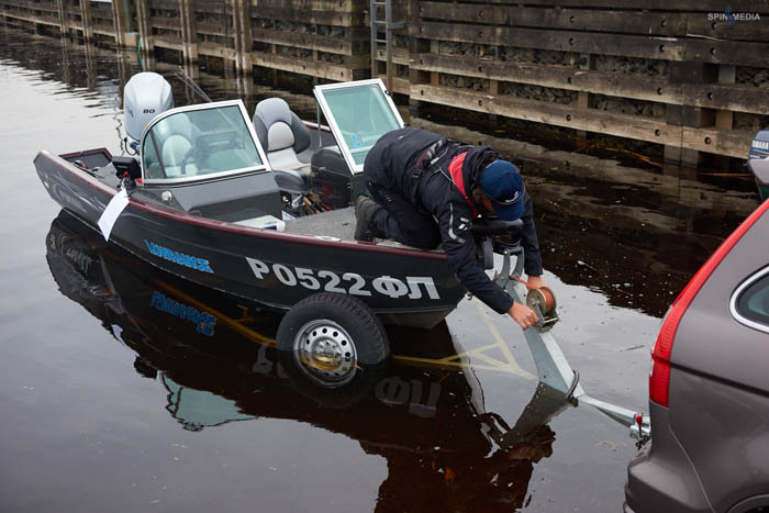 Проснувшись рано утром, собираем все необходимые снасти и укладываем их в катер. Старт официальной тренировки по регламенту назначен на 10 утра, есть немного времени на быстрый завтрак. Перекусив, выдвигаемся к месту спуска лодок: здесь уже скопилась большая очередь машин с прицепами. Подъезжая к слипу, мы увидели, что перед самым спуском организован санитарный барьер и каждую машину с лодкой обрабатывают специальным раствором.