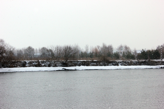 Клёв практически прекратился, попадались лишь мелкие окуни. Поупирался в воблеры. Но тоже ничего. Решили свернуться и по пути заехать в Чулково, посмотреть старые места напротив горнолыжного склона. Пока доехали, снег перестал, ветерок стих. На реке аншлаг. Как будто мёдом намазано. Даже шесть человек с нахлыстом тренируются. И невероятное количество мусора. Аж ловить неприятно. Походили, покидали. Один окунёк граммов на 50 прокатился на лапках ISEEI BiBiBi Bug. На этом ловлю решили закончить.