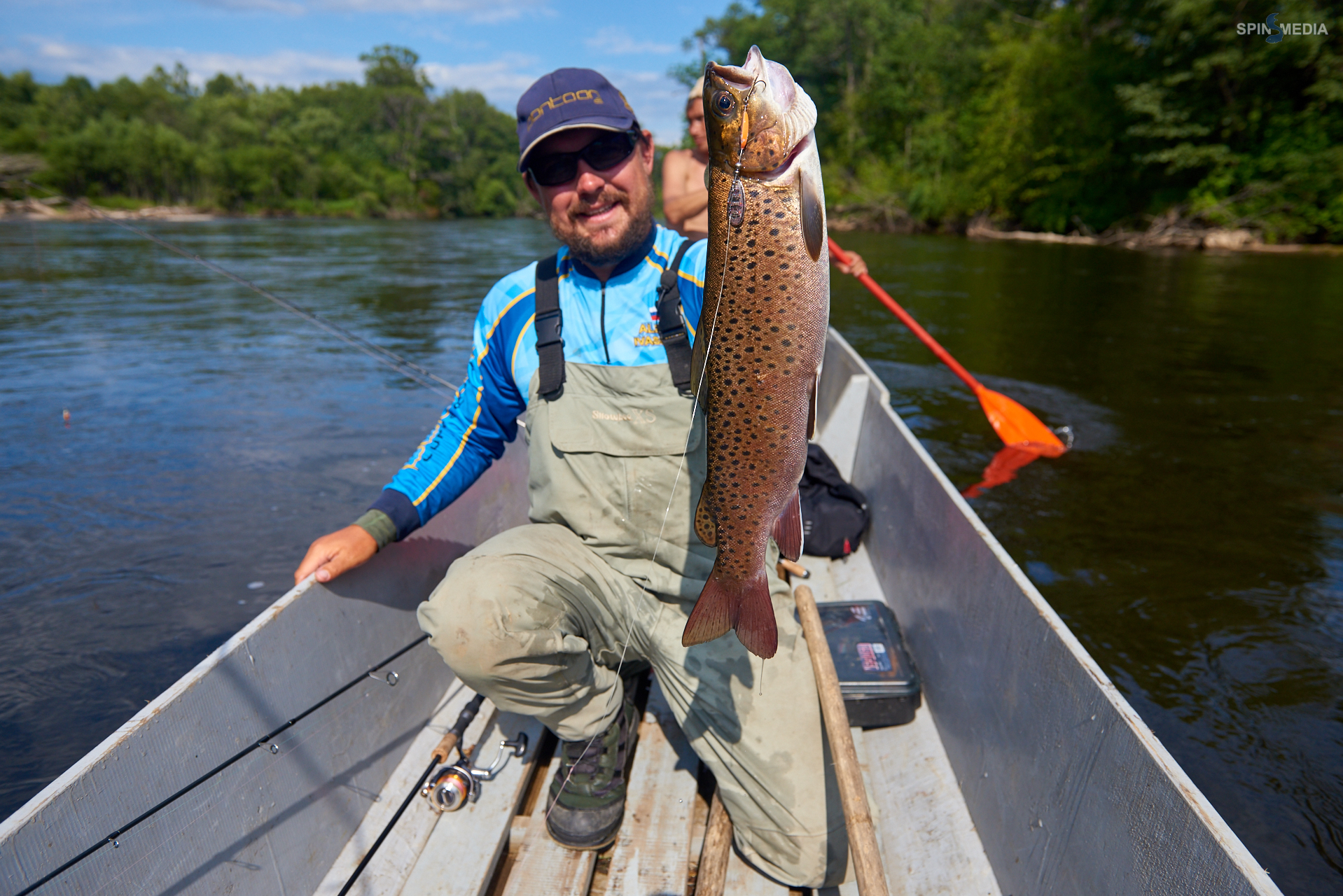 В три часа дня, как и планировали, выходим на основную реку и начинаем сплав. Я поставил приманку, в которую теперь верю больше, чем в любую другую – это Pontoon21 Cablista 125SP-MSR. А Ивашков, видимо проводя аналогию с пойманным большим тайменем на мелкую вертушку, решил ловить блесной.