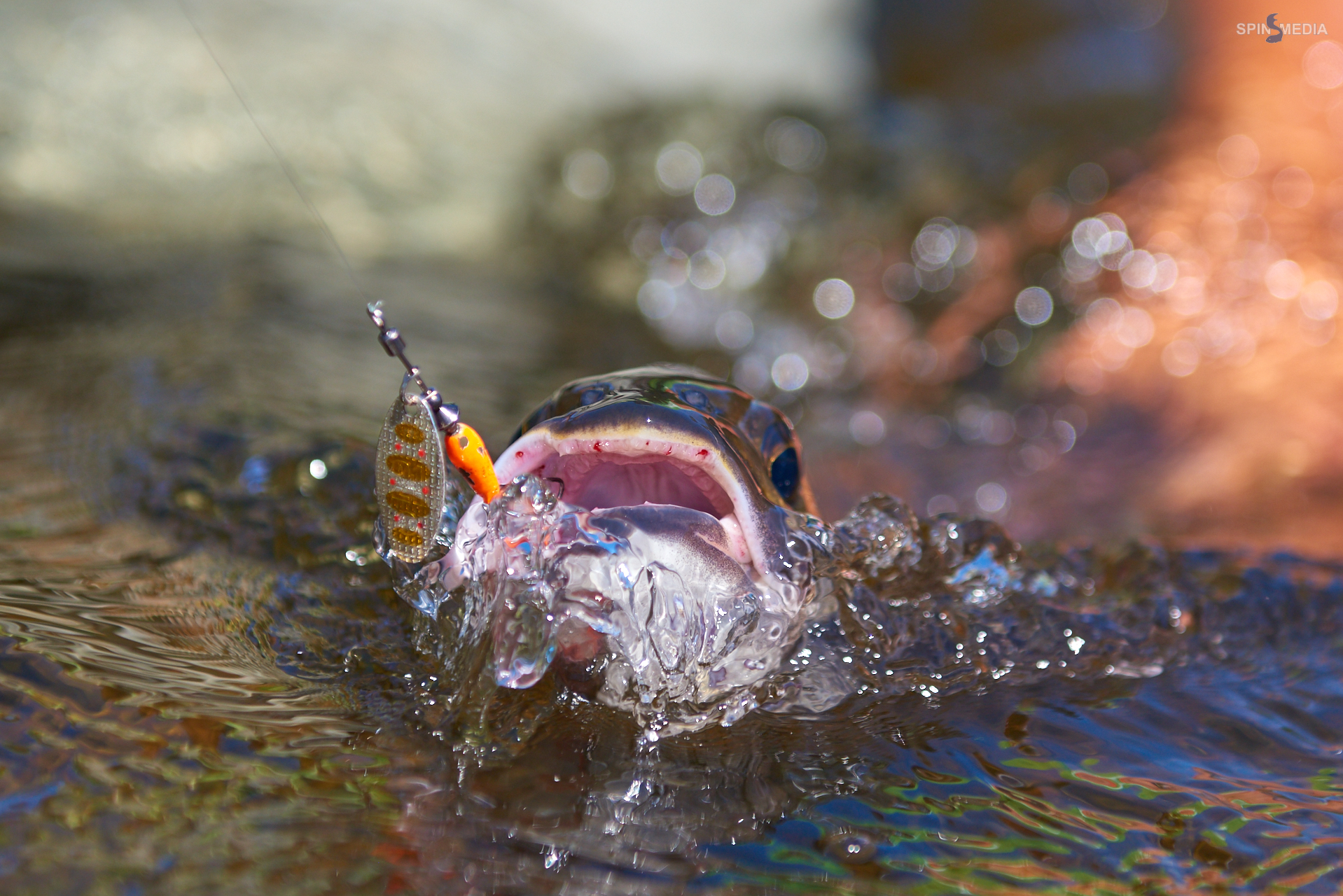 Я предлагал ленкам воблеры различных форм и размеров – толку никакого. Ивашков решил попробовать вертушки размером #0 – #1, и дело сдвинулось: ленки и хариусы стали периодически атаковать вращалки.