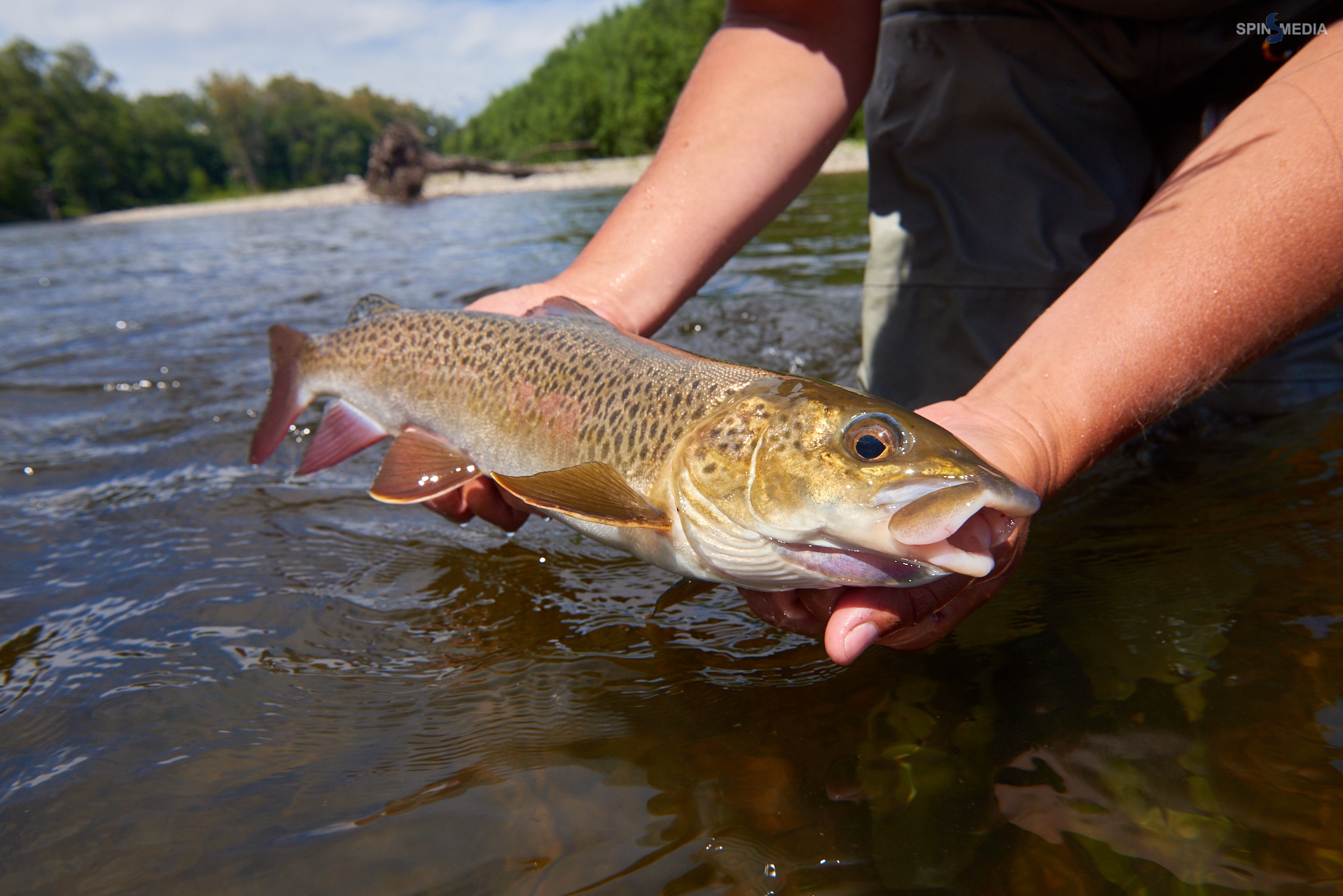 А внешне, да и повадками, эта рыба весьма схожа с привычной ручьевой форелью. Однако, кроме ленка, в сферу нашего интереса здесь входит и его более крупный собрат – таймень. В назначенный час начинаем сплав в надежде на поимку крупной рыбы.