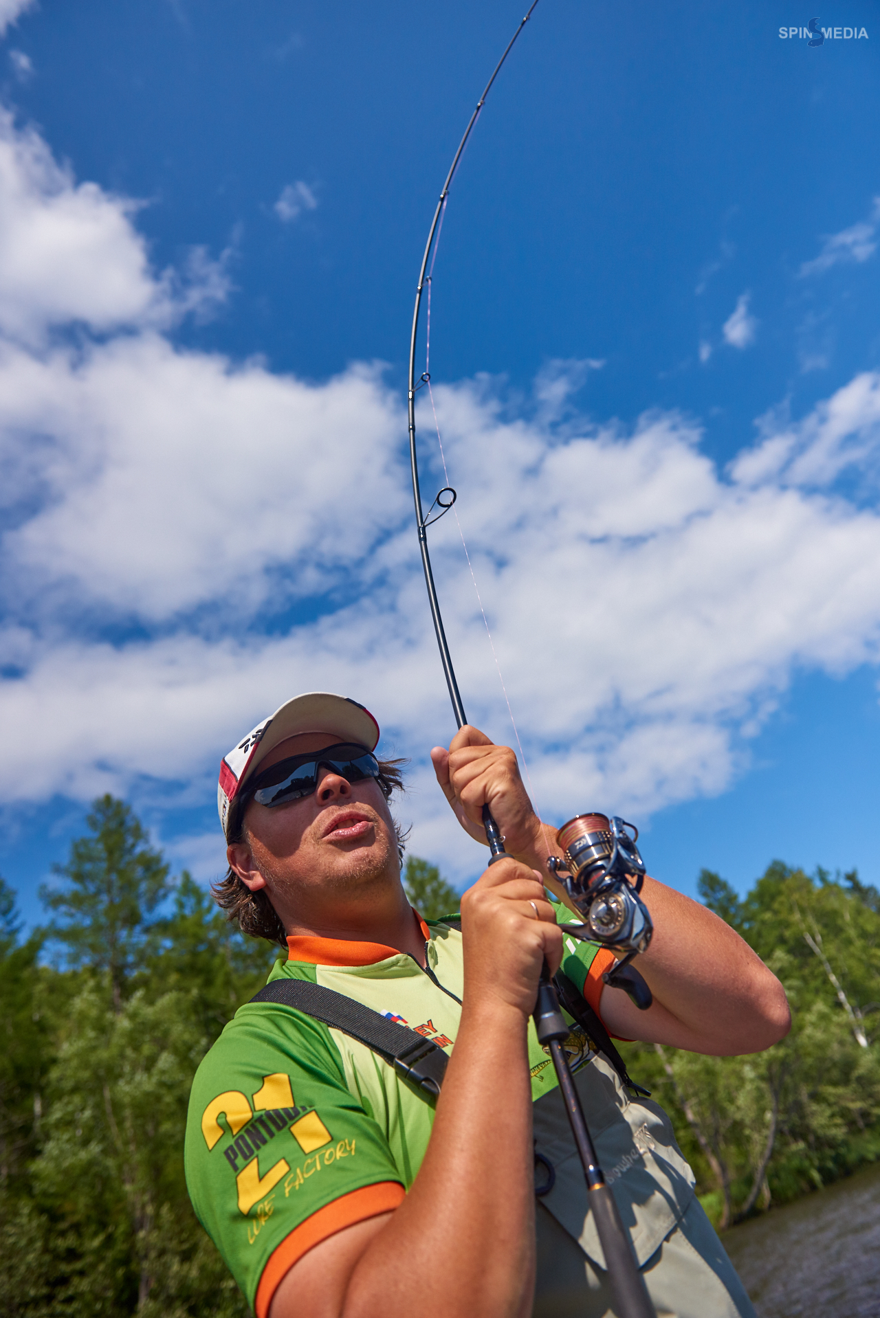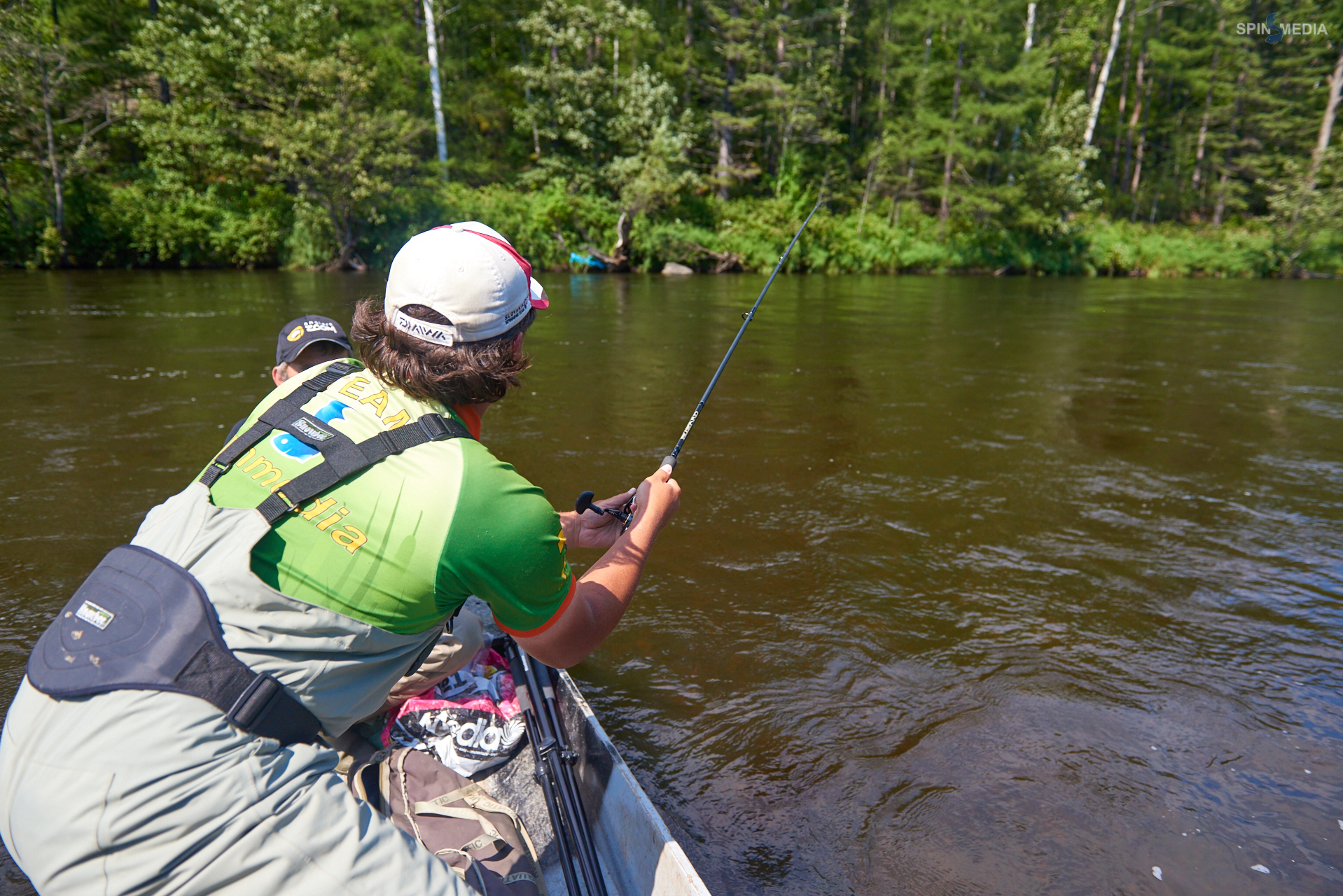 Обычно сплав выглядит как нечто монотонное: лодка сплавляется по течению, а твоя задача — делать максимально большое количество забросов, не упуская перспективных мест. Это именно тот случай, когда количество (забросов) может перерасти в качество. Поэтому всегда в самом начале сплава настраиваешься внутренне на эту монотонность, не ожидая, что почти сразу может клюнуть что-то стоящее… Однако, к этому нужно быть готовым всегда: в конце плёса делаю очередной дальний заброс, начинаю проводку и, когда приманка была уже в десятке метров от лодки, случается мощный удар! Подсечка – тяжесть! Всматриваюсь в воду и вижу, как в толще выворачивается огромный бок тайменя… Кричу: «Есть!!! Есть!!! Есть!!!», а сам, будто в состоянии аффекта, не могу поверить собственным же ощущениям…