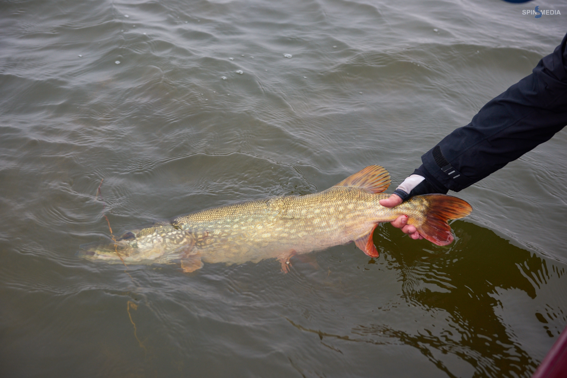 Вываживаю осторожно. На шпуле моей катушки намотан относительно тонкий шнурок Pontoon21 Eight Braid 14 Lb. Если позволить щуке «зарыться» в траве, могут возникнуть серьёзные проблемы с её извлечением. Рыба взяла не так далеко от лодки, поэтому вся борьба происходила накоротке. Впрочем, зимой щука куда более предсказуемый боец: проходы на хвосте и свечки бывают эпизодически, но не с рыбами такого размера, у которых полное брюхо икры. Но и расслабляться тоже не нужно – это, всё же, щука.
