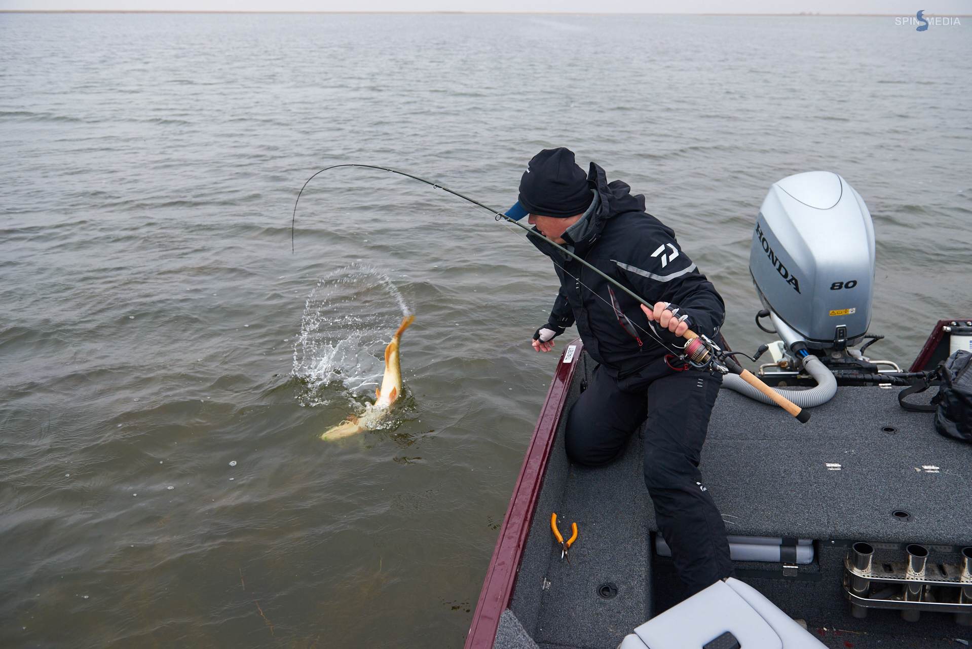 На зимних лиманах есть и ещё одна закономерность: чем сильнее дует ветер – тем больше шансов на поимку крупной щуки. Свою рекордную лиманную хищницу зимой, весившую 9,4 кг, я поймал в уже далёком 2003 году при порывах южного ветра 23-25 м/с – почти ураган! Порой казалось, что если в лодке встать в полный рост – тебя тут же сдует в воду. Тем не менее, щука была настолько активна, что на порывы сильного ветра я мало обращал внимания. В тот раз я рыбачил с вёсельной лодки, теперь же в моём распоряжении широкий и устойчивый катер с мощным двигателем, что обеспечивает и комфорт, и безопасность на воде.