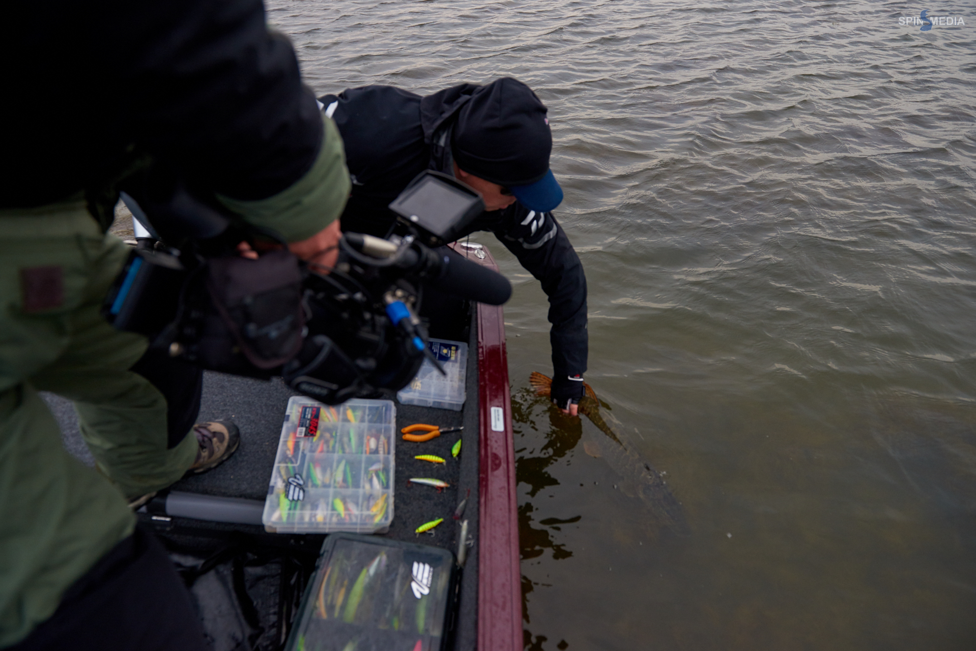 С утра, выйдя на воду, мне пришлось потратить некоторое время на то, чтобы оглядеться: несколько раз проплыл места, работавшие прошлые годы, изучил нынешнее расположение прогалов и отметил самые интересные в навигаторе. Некоторые участки, как мне кажется, мало изменились. На одно из таких мест я и решил встать для начала. Поставил лодку у края прогала, взял удилище ES66MF2, поставил поисковый воблер DUO Tide Minnow 90F и начал его «гонять» по перспективной акватории. Проводка, конечно же, далеко не в летнем варианте: потяжки и рывки мягкие, а паузы – продолжительные.