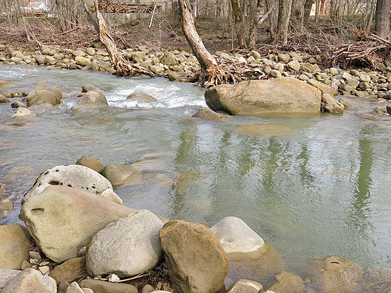 Здесь хоть и есть относительно перспективные локальные приямки, но тратить на них время не хочу. В этот период, ранней весной, собственно, как и зимой, голавль предпочитает держаться в ямах с укрытиями (подмытые корни, поваленные деревья, большие валуны и скальные плиты с нишами). Правда, найти голавля теперь уже можно и на мелководных участках, однако, все равно эти участки должны соседствовать с укрытиями, от «дома» красноперые пока далеко не отлучаются.