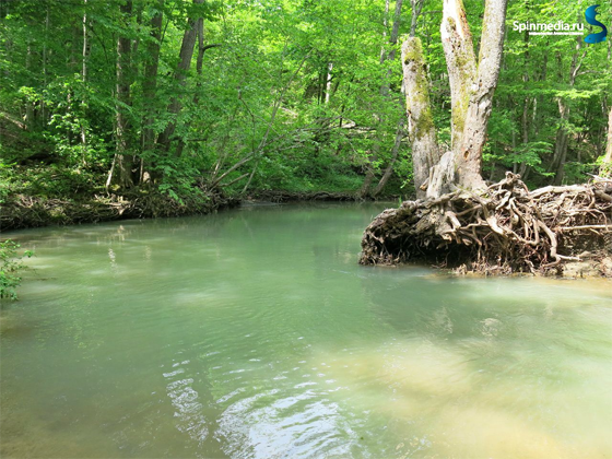 Чем ниже мы спускаемся, тем чище становится речка. Приямки и плесы радуют своей красотой, вот только голавль явно капризничает – на трех подряд перспективных ямах у нас было только по сходу. Конечно, помня о времени, мы особо и не упирались в каждое место, ограничиваясь всего лишь несколькими забросами. Однако, как правило, активная рыба проявляет себя уже на первой же проводке, но не сегодня.