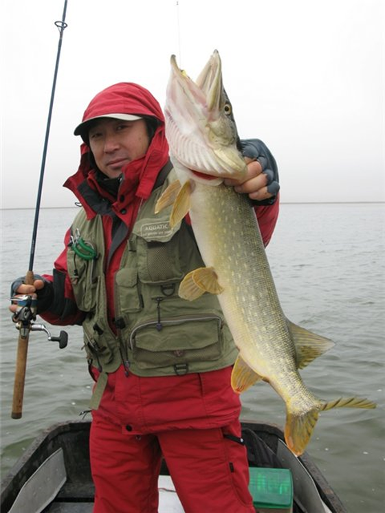 Сопротивление щука оказала очень отчаянное – со свечками, ускорениями и попытками с разбега уйти под лодку, что не свойственно для зимней рыбы.