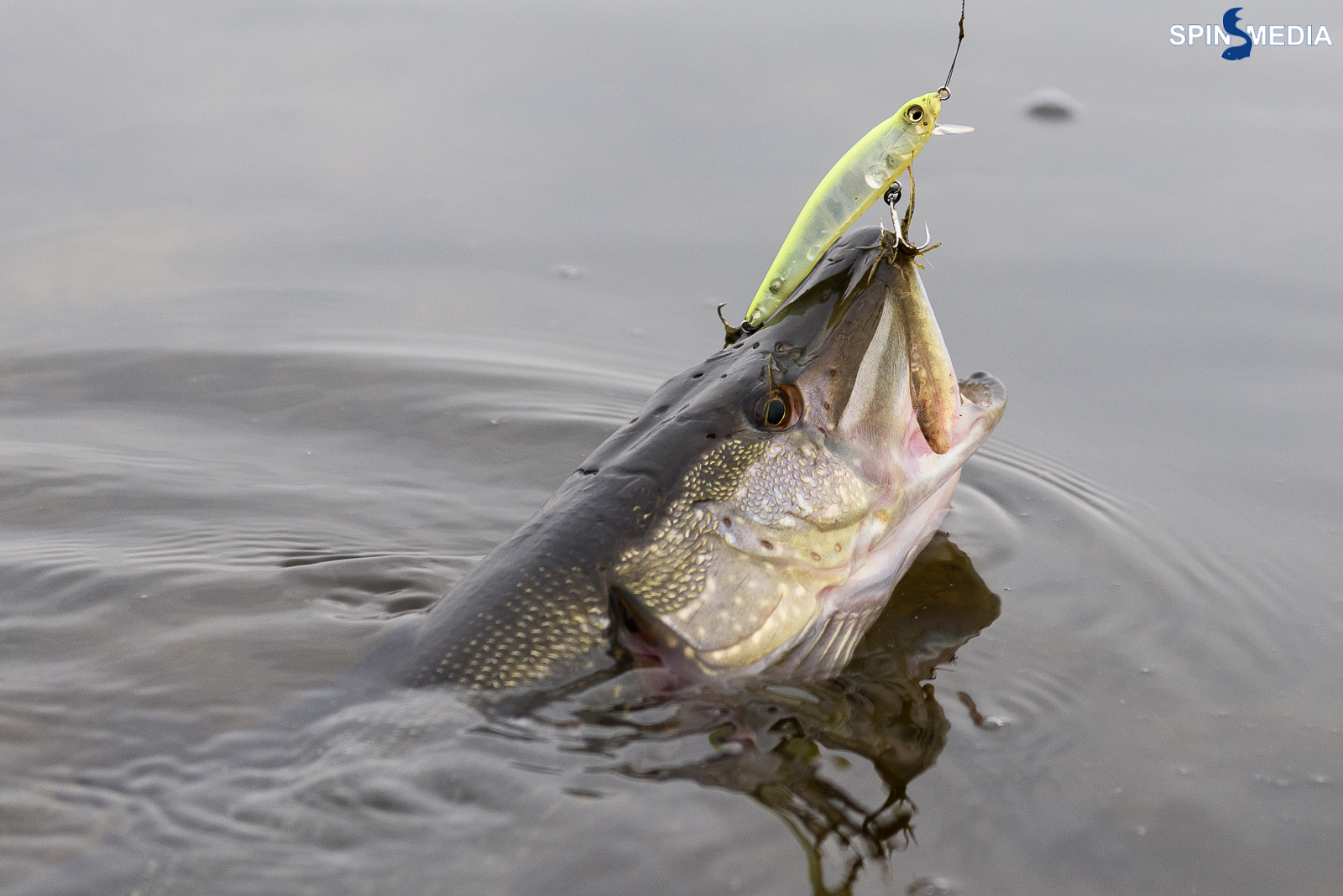 Всматриваюсь в воду и сразу вижу то, что так хотел увидеть: у поверхности кормится много мелкой рыбы! Говорит это лишь об одном – хищник рядом! Хорошо вкладываюсь в заброс, отправляя FX-9 в полет поперек перспективного участка. Приманка падает на воду, я начинаю проводку: серия из пяти-семи легких рывков и пауза… При такой технике анимации FX-9 делает резкие развороты и кульбиты практически без заглубления, при этом, захватывая носовой частью воздух с поверхности воды. С точки зрения хищника – идеальная жертва, что на первой же проводке подтвердила щука: выход к приманке, сопровождаемый характерной килевой волной, жадная атака – есть!