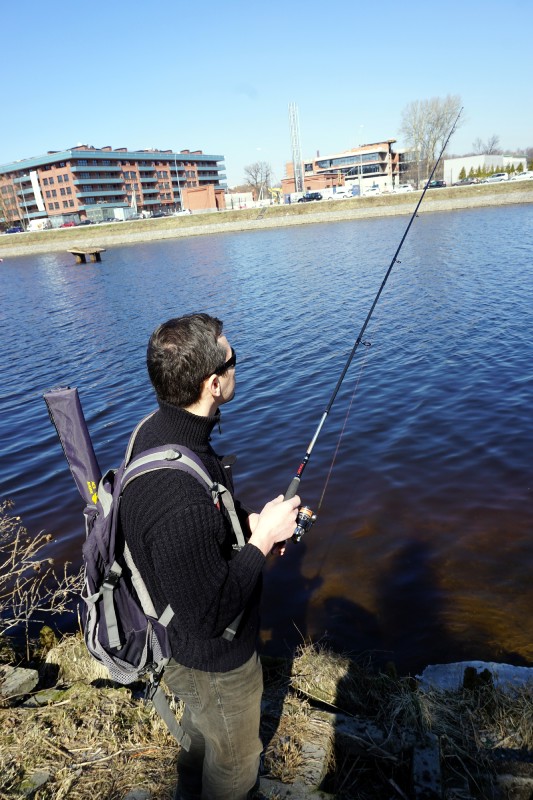 Третье занятие мы провели на широком русле Большой Невки. Очень интересный участок с наличием (в определённые периоды) хорошего судака, окуня, щуки и, бывало, даже сазанов от 8 до 12 кг. Здесь мы уже просто ловили, а я отвечал на возникающие вопросы, наслаждаясь хорошей погодой и работой прекрасных спиннингов (в этот раз я взял для себя сенсорные – по вышеуказанной классификации – Seven&Eleven 7116 XF и Stylo 732 J). Поклёвок, правда, так и не увидели, хотя пару раз хотелось выдать желаемое за действительное.