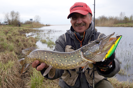 Встреча, как обычно, была радостно- гастрономически-обильной! Домашний борщец, голубцы, блинчики. Как говорил герой Фарады в «Формуле любви»: «Жуткое селенье!». С трудом отвалившись от стола, пошел готовиться к рыбалке. Чудские речки – отдельный материал, по весне зависящий исключительно от уровня воды, летом почти пересыхающие местами, весной удивляющие непредсказуемости каждодневных миграций и изменением стоянок рыбы. Выбор пал на ближайшую к дому речку. Правда, в этот раз совершил вечерний визит на водоем в гордом одиночестве. Погода была не комильфо – дул сильный холодный ветер с озера. Но охота, впрочем, как и рыбалка, пуще неволи. Да и ехать до мест несколько минут... В этот раз я джиг оставил полностью, решив посвятить себя здесь чисто воблерным экслибрисам. На реке стояло много поплавочников, но, судя по постоянным переходам и болтливости, они грустно «чупсили». Попробивав известные мне поворотики «нейтральными» Dexter’ом и 95-м Vision’ом, я тоже немного загрустил. Вода резко поднялась и, видимо, щука еще не установилась на сменившемся горизонте.