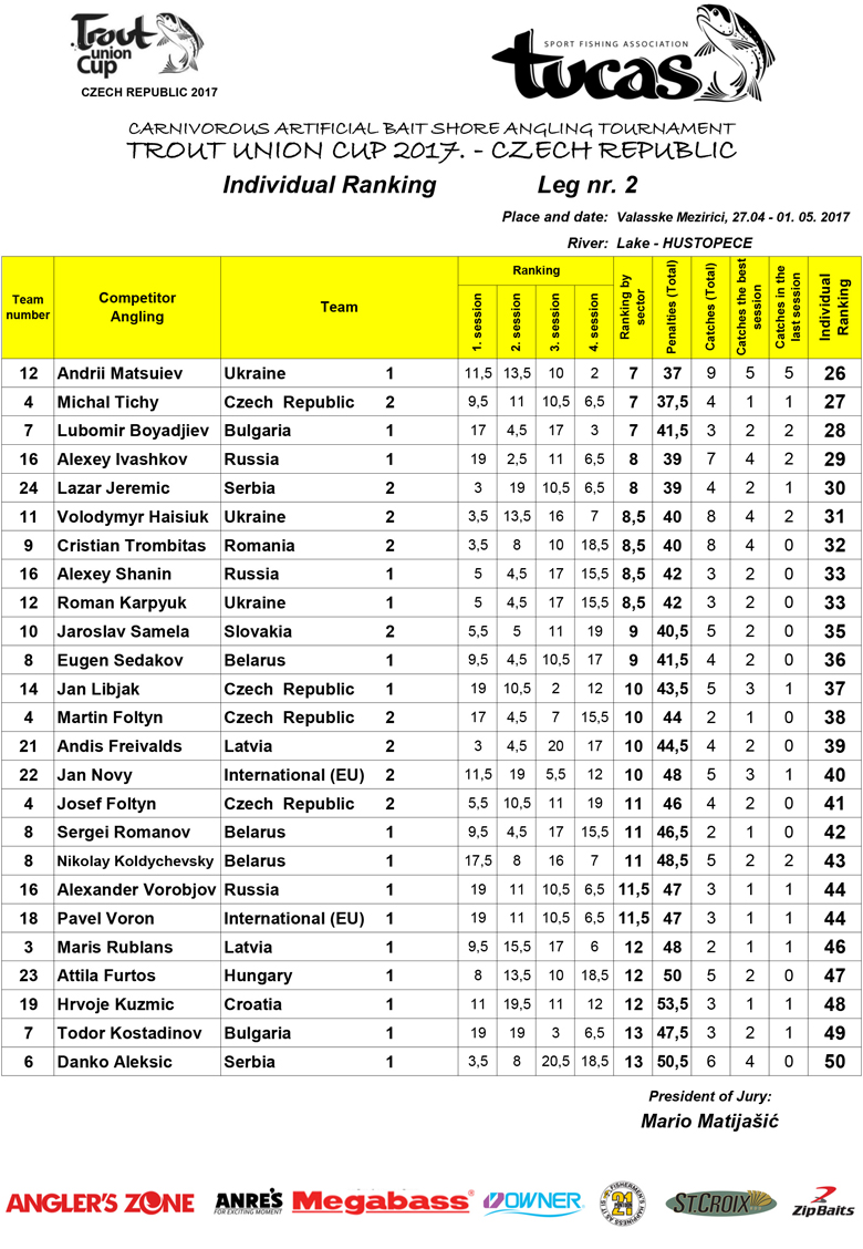 Словаки продемонстрировали свой универсализм. Что река, что пруд – они готовы и собраны. Серебро тому прекрасное подтверждение. Хозяева турнира – чехи – вежливо пропустили гостей вперёд, однако третью ступень оставили за собой. Однако индивидуальный зачёт существенно отличается от командного. На первом месте – представитель Болгарии Петар Лаков (Petar Lakov), на втором – Рауль Гроза (Raul Groza) из команды Румынии, а на третьем – Жозеф Межлены (Joszef Meszleny) из Венгрии.