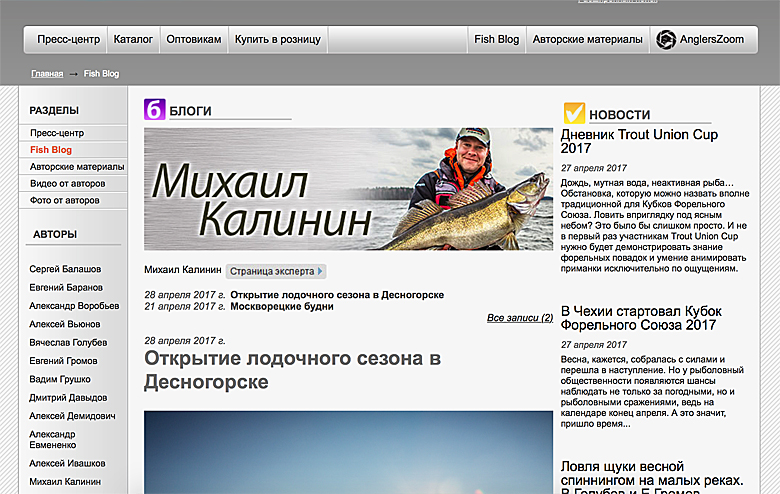 Мы рады представить нового блоггера на нашем сайте. Знакомьтесь - Михаил Калинин. Многим он известен по рыболовному спорту, а точнее - по достижениям в нём. Михаил - многократный победитель и призёр соревнований по спиннингу высокого уровня. На его счету победа в личном зачёте на Чемпионате России по спиннингу с лодок в 2016 г. и "серебро" в 2013 г., Михаил является четрёхкратным чемпионом Москвы по ловле спиннингом с лодок в командном зачёте и двукратным абсолютном чемпионом Москвы.