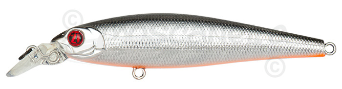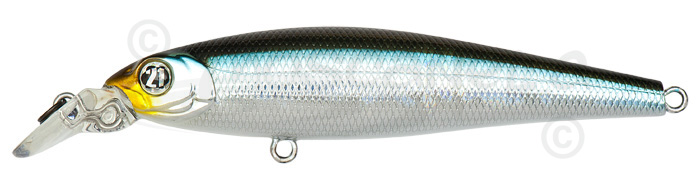 Стоит отметить, что смещаясь в хвост, цилиндр делает головную часть более лёгкой, и при стандартном расположении петли крепления лески проводка рывками вынуждала бы Saunda подниматься к поверхности… но форма и толщина лопасти (характерная для воблеров, работающих на сильных течениях) подобрана таким образом, чтобы занизить точку крепления лески, поэтому на рывке Saunda «кивнёт», рыская в том же горизонте ярко и активно. Заодно такая лопасть отлично переносит контакты со дном и препятствиями.