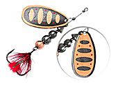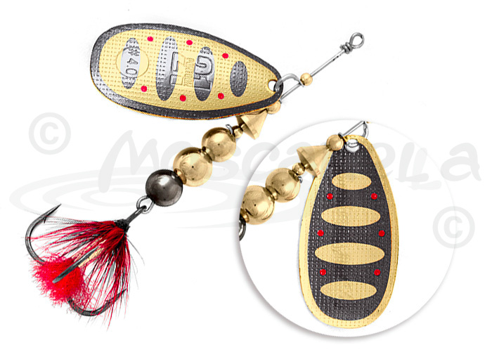 - надёжный тройник с опушкой из качественного материала, гармонирующего с окраской лепестка. Опушка фокусирует внимание хищника, снижая число промахов при атаке, служит камуфляжем для тройника, а также дополнительной балансировкой конструкции в горизонтальном положении.