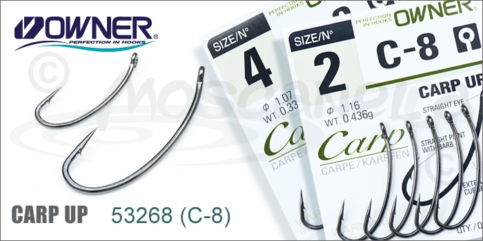 Крючки данной модели отлично подходят для вязания монтажей, используемых для подачи всплывающих бойлов и бойлов нейтральной плавучести. Годятся они и для презентации тонущих насадок. Крючки C-8 прекрасно зарекомендовали себя в качесте основы для монтажей типа «360-Rig», обеспечивающих бойлу особую подвижность относительно крючка и наоборот, что важно не только при дегустации карпом насадки, но и при подсечке. Крючки имеют остое отогнутое в сторону жало и длинное изогнутое цевье, заканчивающееся прямым колечком. Защитное покрытие — Black Chrome.