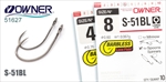 Серию крючков Owner 51607 (S-35BL) рекомендуется использовать при оснащении вращающихся и колеблющихся блесен. Крючки имеют полукруглый загиб, крепежное кольцо увеличенного диаметра и "безбородое" жало. В связи с последним крючки данной серии широко используются спортсменами при оснащения приманок для соревнований.