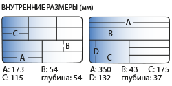 • внутренние размеры ячеек отделения-1: 173x54x115x54 мм,