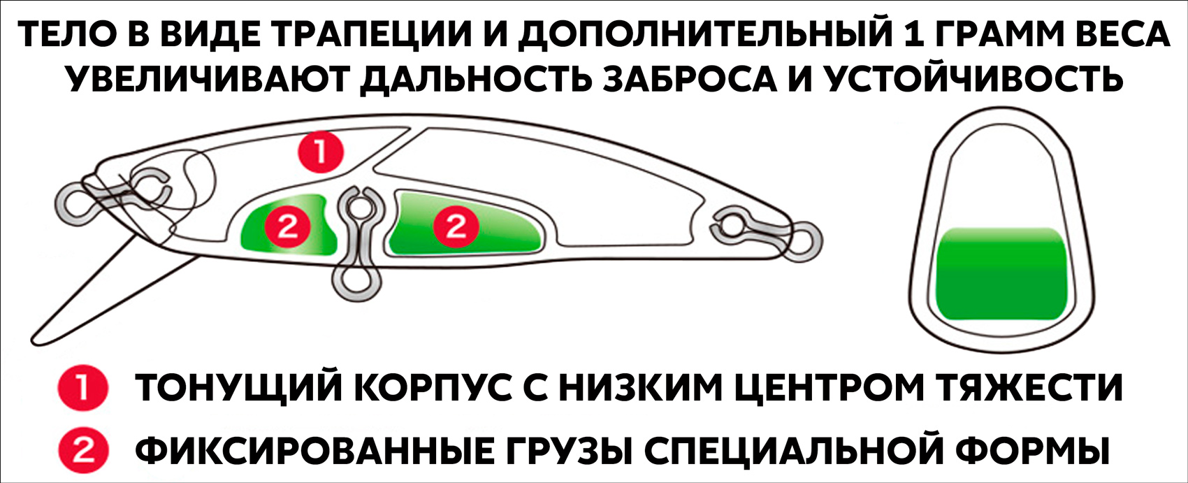 Забрасывайте Ryuki 46S под любым углом даже на сильном течении – он устоит, и его колебания будут отчётливо передаваться хищнику сквозь полифонию встречных струй. Работа Ryuki 46S чуть более плавная чем у Ryuki 45S, и при столь небольшом размере воблер в спокойной воде с равномерной проводкой ухитряется демонстрировать самый естественный рисунок игры, виляя всем телом!