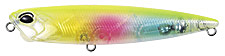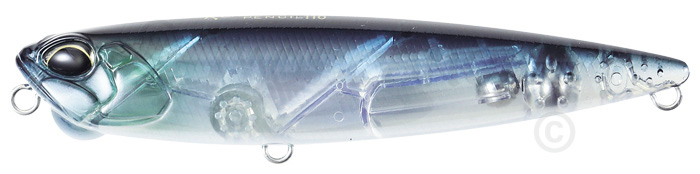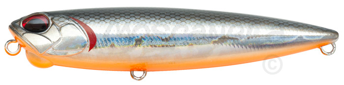 у Realis Pencil 65 нет закреплённого в хвосте груза. Система баланса состоит из двух шаров, свободно перемещающихся внутри корпуса. Кроме высокочастотного многоуровневого перестука шаров друг о друга и каждого – о стенки корпуса, такое свободное перемещение центра тяжести обеспечивает множество вариаций нестандартных «ответов» этой небольшой модели на стандартные проводки. Разумеется, Realis Pencil с его компактным телом и внутренней огрузкой хорошо летит и рисует прекрасные «ёлочки», как и положено высококлассному уокеру. Однако стоит потратить время и поэкспериментировать, подлавливая для рывка различные положения воблера в воде, а не только когда он достигает крайнего правого или левого положений: два свободно движущихся шара способны и наклонить тело сильнее на бок, и подтолкнуть резче вперёд, и заставить занырнуть глубже ожидаемого.