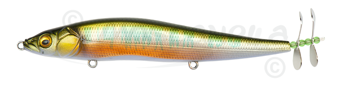 Созданный на основе чрезвычайно популярного щучьего воблера Vision 110, LapStick имеет от него всего два существенных отличия: во-первых, у него нет традиционной для воблеров заглубляющей лопасти и, во-вторых, в качестве "хвостового оперения" он снабжен двумя металлическим пропеллерами. В результате получился классический поверхностный "базбейт". Что это дает? При проводке, будь то равномерное подматывание или рывковая анимация в стиле stop&go, приманка действует строго в поверхностном слое воды, легко преодолевая полупогруженные растения и другие всевозможные препятствия. Пропеллеры, интенсивно вращаясь, создают аппетитный бурлящий след, что способствует привлечению самого разнообразного хищника, в первую очередь большеротого окуня – басса, а в отечественных водоемах – щуки.