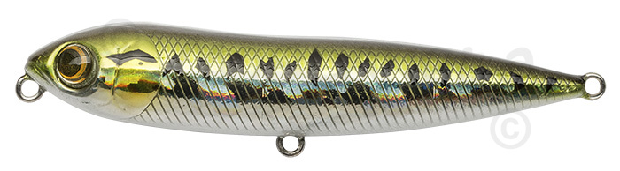 Скачки, рывки, скольжения и дугообразные перемещения по водной поверхности – вот набор "фирменных" приемчиков этого уокера. Ну, а что касается оформления – здесь все, что и положено иметь воблеру от Owner/Cultiva: эксклюзивные "живые глаза", голографическое покрытие, шары-погремушки...